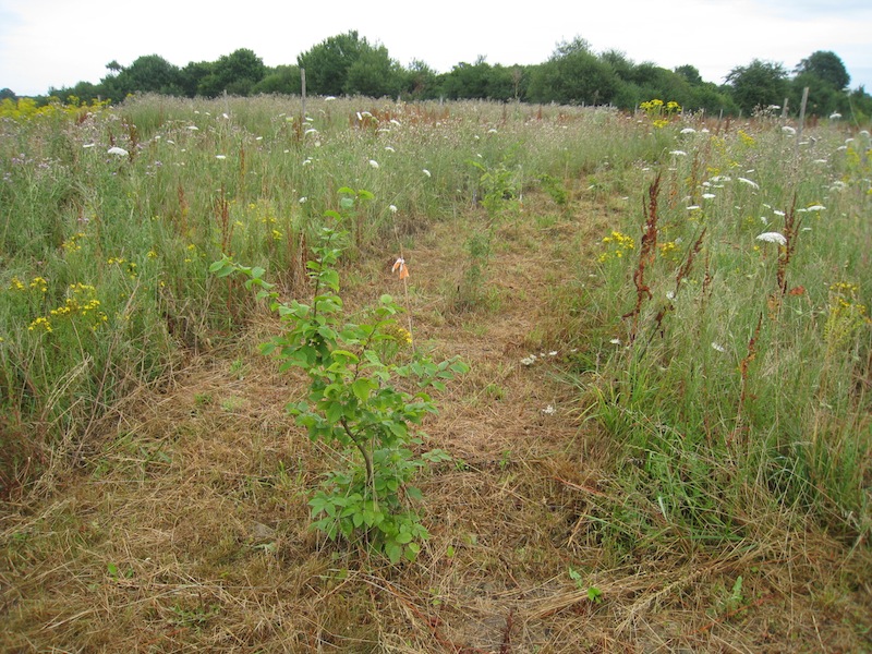 Autour du cadran enfin, une haie plantée de charmes et d’érables champêtres protège le verger contre le vent du nord. Cette strate arbustive en forme libre (plein vent) ne sera taillée que pour permettre une bonne circulation de l’air autour des fruitiers