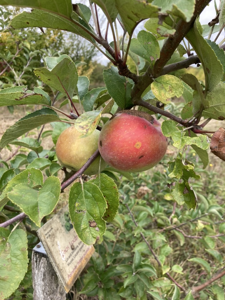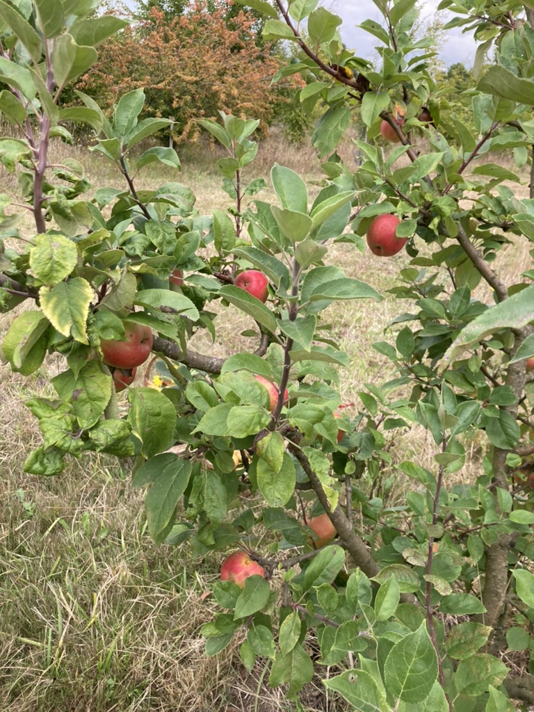 Une bonne partie des pommiers a fleuri en avril 2023 mais les gelées tardives ont emporté les pommes de la moitié des variétés. Les pucerons verts (aphis pomi) ont également fait des ravages, plus qu’en 2022 où nous avions un peu vite conclu que la plupart des variétés du conservatoire étaient insensibles à ces ravageurs. Nous avons donc finalement pu récolter des pommes ‘Calville Rouge’, ‘Gros Locard’ et ‘Sauvageon Barré’ et devrons attendre pour les autres.